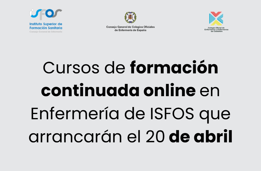 Las colegiadas y colegiados del Colegio Oficial de Enfermeros y Enfermeras de Castellón (COECS) ya pueden inscribirse a los cuatro primeros cursos de formación continuada online en Enfermería del Instituto Superior de Formación Sanitaria (ISFOS) previstos para este primer cuatrimestre de 2026.
