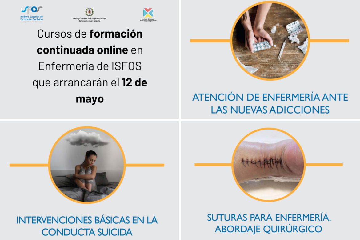 Las colegiadas y colegiados del Colegio Oficial de Enfermeros y Enfermeras de Castellón (COECS) ya pueden inscribirse a los tres cursos de formación continuada online en Enfermería del Instituto Superior de Formación Sanitaria (ISFOS) que arrancarán el próximo 12 de mayo. El plazo de inscripción está abierto hasta el próximo 28 de abril.