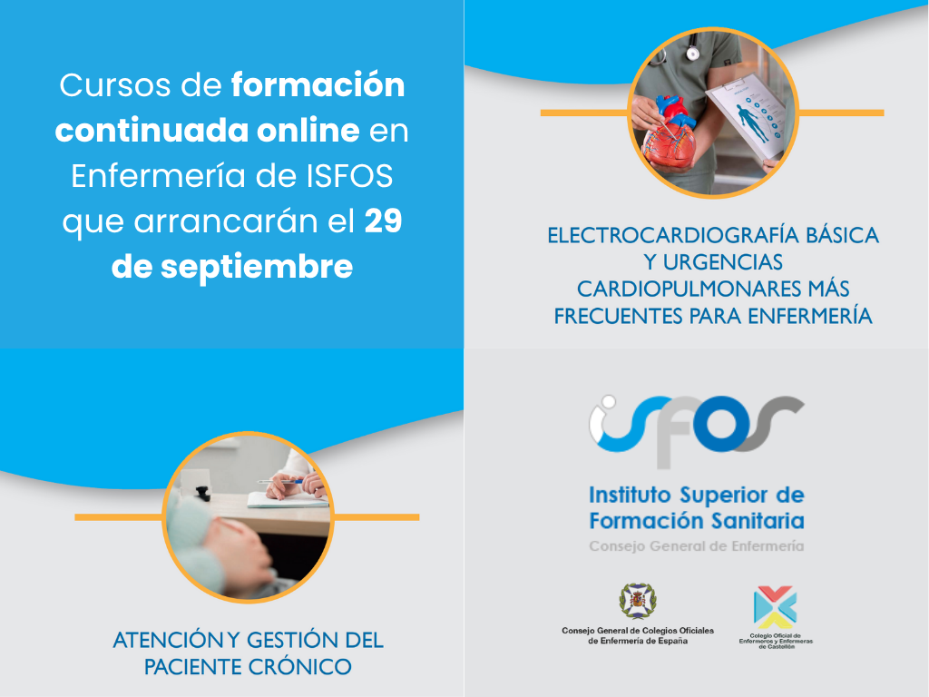 Las colegiadas y colegiados del Colegio Oficial de Enfermeros y Enfermeras de Castellón (COECS) ya pueden inscribirse a los dos cursos de formación continuada online en Enfermería del Instituto Superior de Formación Sanitaria (ISFOS) que arrancarán el próximo 29 de septiembre. El plazo de inscripción está abierto hasta el próximo 10 de septiembre.