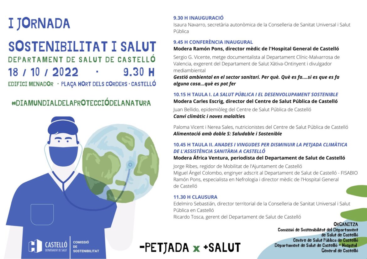 La sesión comenzará a las 9.30 horas con la ponencia de la secretaria autonómica de la conselleria de Sanitat Universal i Salut Pública, Isaura Navarro, tras la que le sucederá una conferencia inaugural sobre la gestión ambiental en el sector sanitario. Igualmente se desarrollarán dos mesas redondas sobre la salud pública y el desarrollo sostenible y la huella climática en la asistencia sanitaria.
