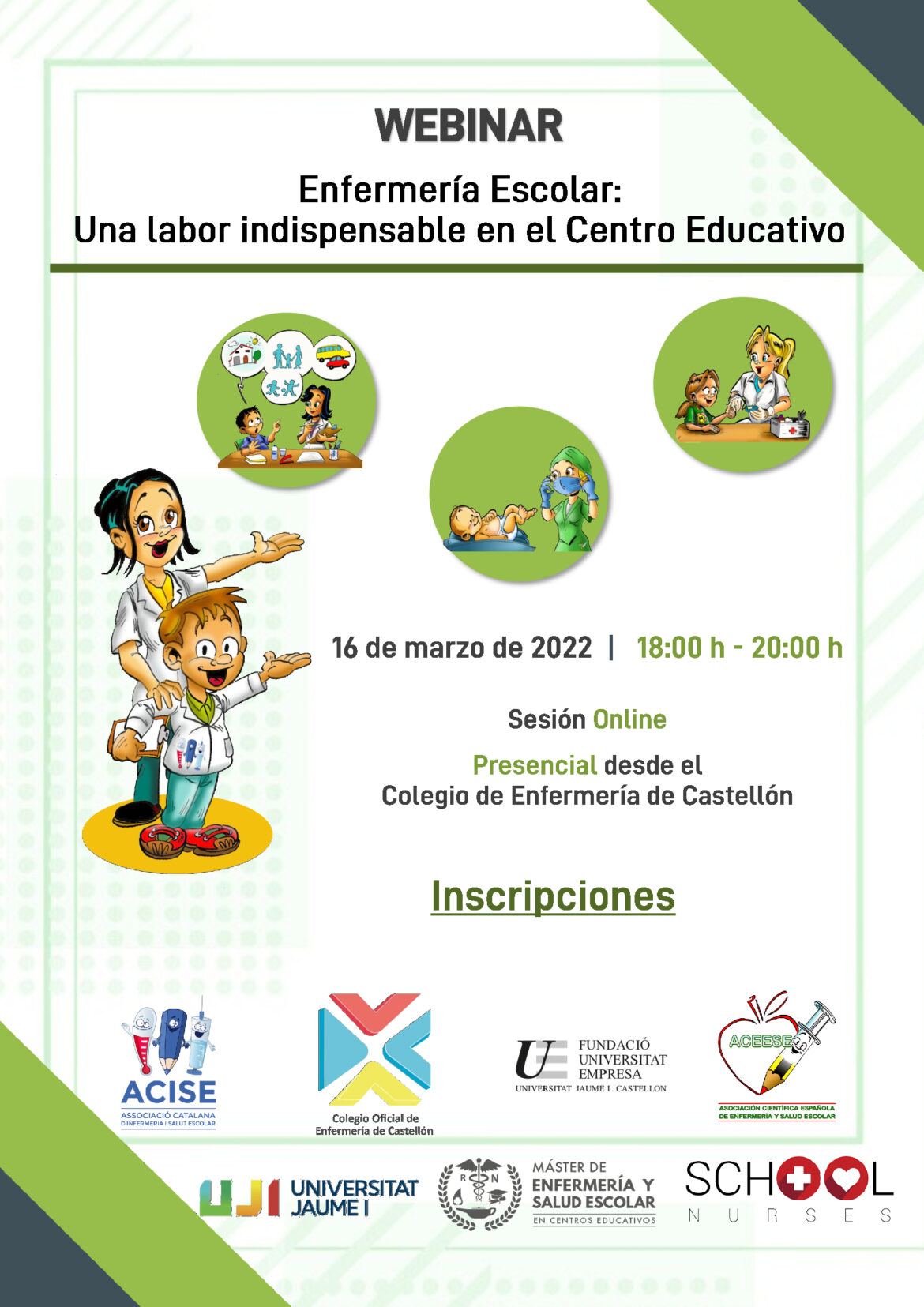 La Asociación Científica Española de Enfermería y Salud Escolar (ACEESE) ha organizado para el miércoles, 16 de marzo, un webinar titulado “Enfermería escolar: una labor indispensable en el centro educativo”. Esta charla se podrá seguir tanto de manera presencial, en la sede del Colegio Oficial de Enfermeros y Enfermeras de Castellón (COECS), como por streaming.