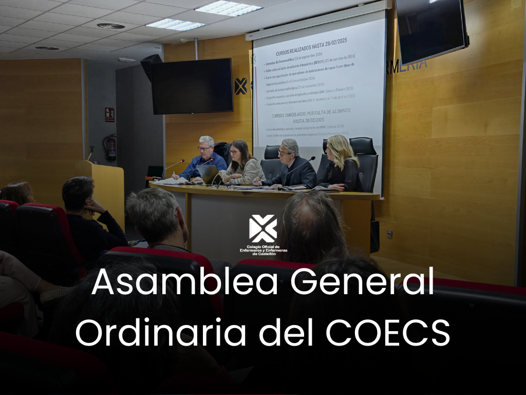 El Colegio Oficial de Enfermeros y Enfermeras de Castellón (COECS) informa a todas sus colegiadas y colegiados de que la Junta de Gobierno ha convocado su Asamblea General Ordinaria de Presupuestos para el próximo 27 de noviembre de 2025. La reunión se celebrará en el salón de actos de la sede colegial (Avda. Virgen del Lidón, 57, Castellón) a las 19:00 horas, en primera convocatoria, y a las 19:30 horas, en segunda convocatoria.