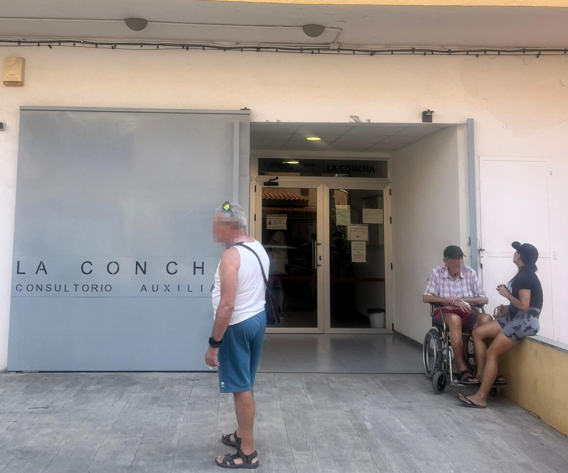 Pacientes esperando en la entrada de un consultorio auxiliar en Oropesa del Mar.