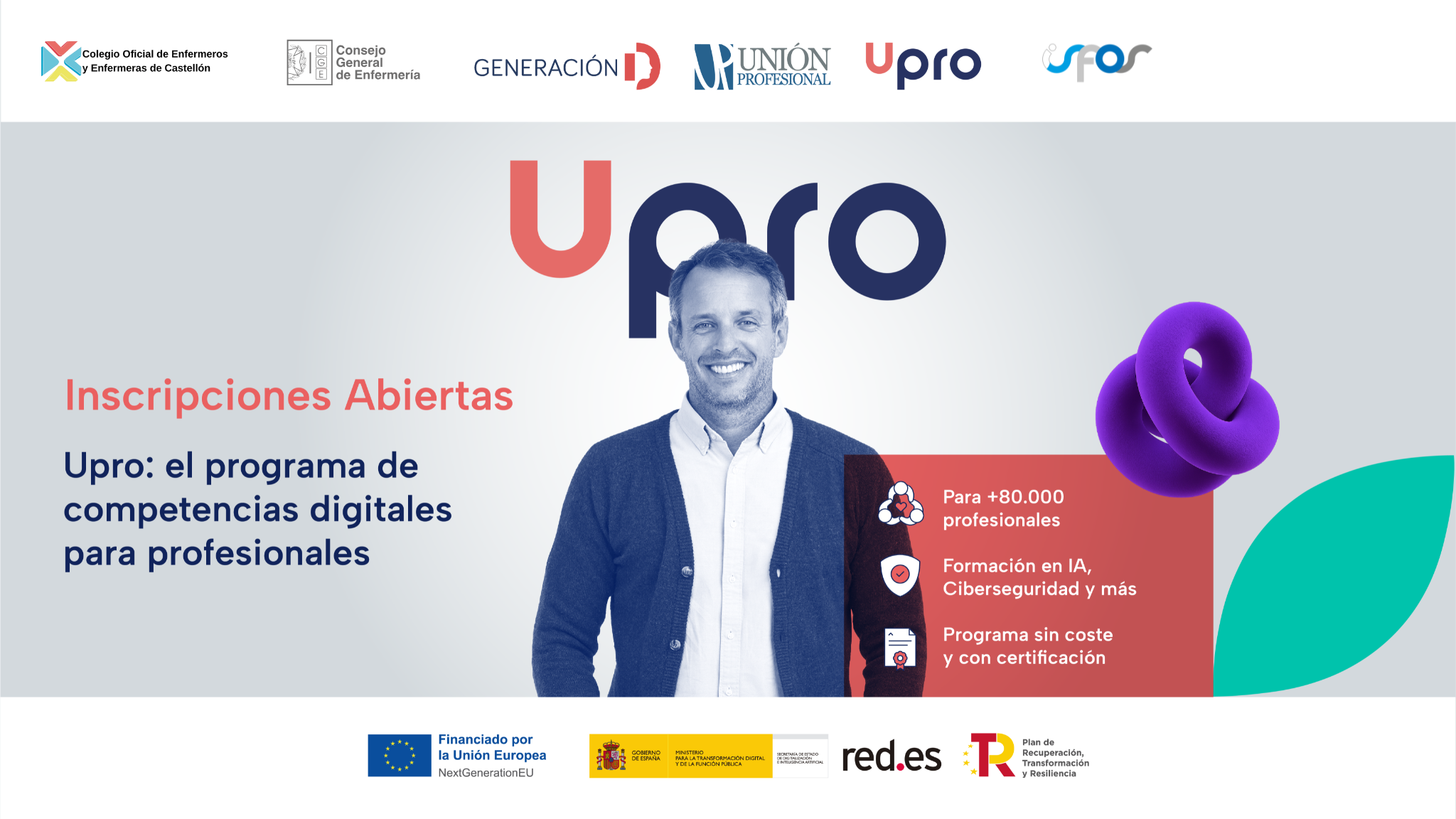 Gracias a los fondos europeos Next Generation, “Unión Profesional”, entidad que agrupa a todas las profesiones y actúa como canalizadora del programa “Formación en competencias digitales para profesionales”, ha puesto en marcha esta iniciativa que, en nuestro caso, se desarrolla a través del Consejo General de Enfermería. Esta formación se ofrece de forma totalmente gratuita para las colegiadas/os.