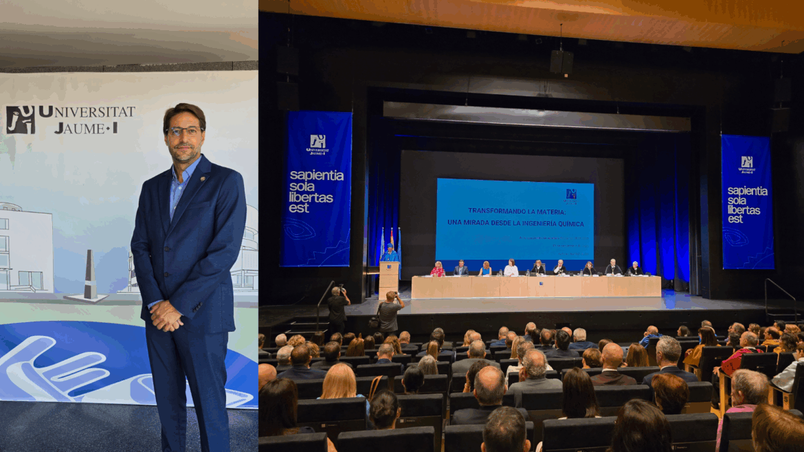 El catedrático de Ingeniería Química de la UJI Antonio Barba Juan ha impartido la lección inaugural bajo el título “Transformando la materia: una mirada desde la ingeniería química”. En su intervención, ha repasado la evolución histórica de la ingeniería química y ha remarcado que esta disciplina “transciende más allá de la industria química tradicional” porque sus principios se aplican a cualquier proceso industrial donde se transforma la materia.
