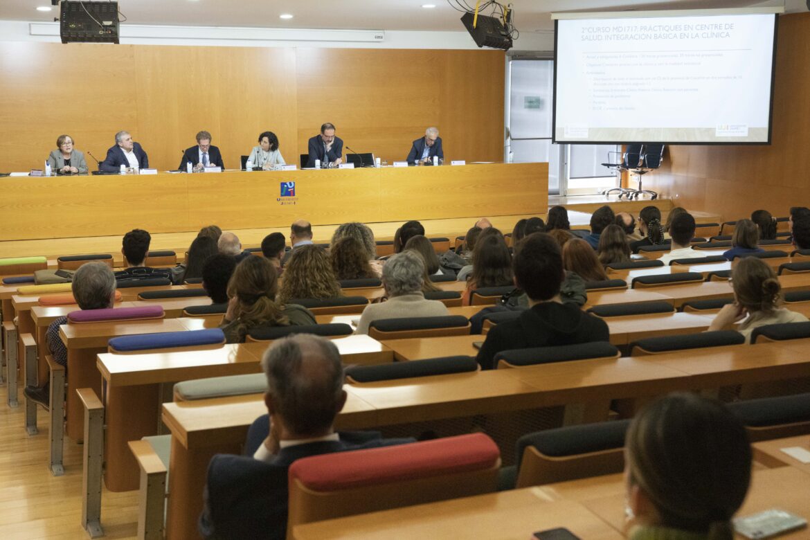 El acto ha sido presentado por la rectora de la Universitat Jaume I, Eva Alcón, y conducido por la vicerrectora de Estudiantado y Vida Saludable, Mamen Pastor, y ha contado con las intervenciones de Eladio Collado, decano de la Facultad de Ciencias de la Salud de la UJI; Enrique Soler, subdirector general de Actividad Asistencial Integrada; M. José Lloria, comisionada de Atención Primaria y Comunitaria del Sistema Valenciano de Salud; M. José Monedero, profesora asociada de Medicina y responsable de prácticas clínicas extrahospitalarias de la UJI, y Jorge Navarro, profesor asociado responsable de Atención Primaria en la UV y director médico del Hospital Clínico Universitario de València.
