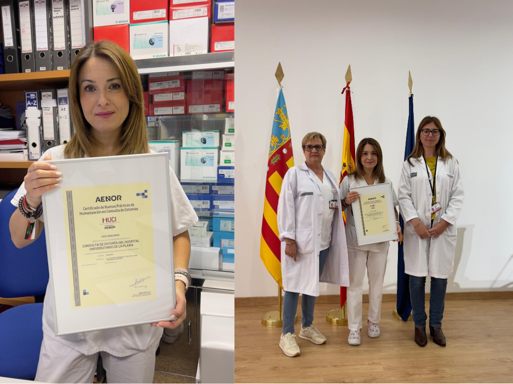 VILA-REAL (2025-6-9). La consulta de Ostomías del Hospital Universitario de La Plana ha recibido la certificación de buenas prácticas en humanización del Proyecto HU-CI AENOR, avalado por diferentes sociedades científicas.
