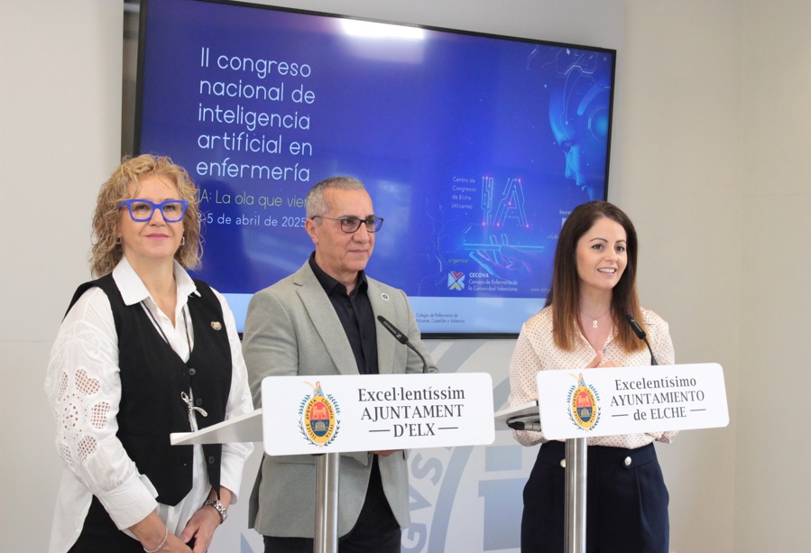 (2025-4-2) El II Congreso Nacional de Inteligencia Artificial en Enfermería, organizado por el Consejo de Colegios de Enfermeras y Enfermeros de la Comunitat Valenciana (CECOVA), reunirá a más de 500 profesionales y expertos del sector en la ciudad de Elche. Durante los días 3, 4 y 5 de abril, el Centro de Congresos de Elche será el epicentro de la innovación en el campo de la enfermería, con ponencias, demostraciones y talleres especializados que han explorado el impacto de la IA en la profesión, según se ha expuesto en la rueda de prensa realizada hoy en el Ayuntamiento de Elche.