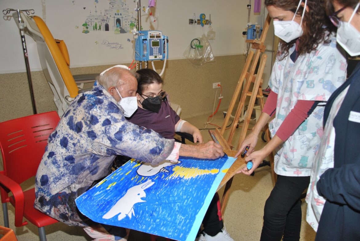 El artista Juan Ripollés ha visitado el Hospital de Día Pediátrico del Hospital General de Castellón dentro del proyecto artístico puesto en marcha desde la Unidad Pedagógica Hospitalaria que dedicará este curso escolar 2024 a la pintura castellonense. Así, durante la mañana de ayer, Ripollés compartió lienzo y pincel con pacientes pediátricos del Hospital de Día y visitó las instalaciones de Pediatría y del aula escolar.