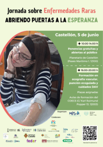 La Jornada sobre Enfermedades Raras “Abriendo puertas a la esperanza” cuenta con un gran apoyo institucional. Además del COECS, las entidades colaboradoras incluyen a la Generalitat Valenciana, la Fundación para el fomento de la Investigación Sanitaria y Biomédica de la Comunidad Valenciana (FISABIO), el Síndic de Greuges de la Comunitat Valenciana, el Ayuntamiento de Castellón, la Universitat Jaume I, la Universidad CEU Cardenal Herrera, el Departamento de Salud de Vinaròs, el Departamento de Salud de La Marina Baixa, el Hospital Universitario y Politécnico La Fe, el Hospital Universitario Vall d’Hebrón, el centro de atención La Casa de Sofía (del Hospital Sant Joan de Déu), el Instituto de Investigación Sanitaria y Biomédica de Alicante (ISABIAL), Cámara Valencia Escuela de Negocios, Vygon España, la Federación Española de Enfermedades Raras (FEDER) y la Asociación de Enfermedades Raras de Elche (AERElx).