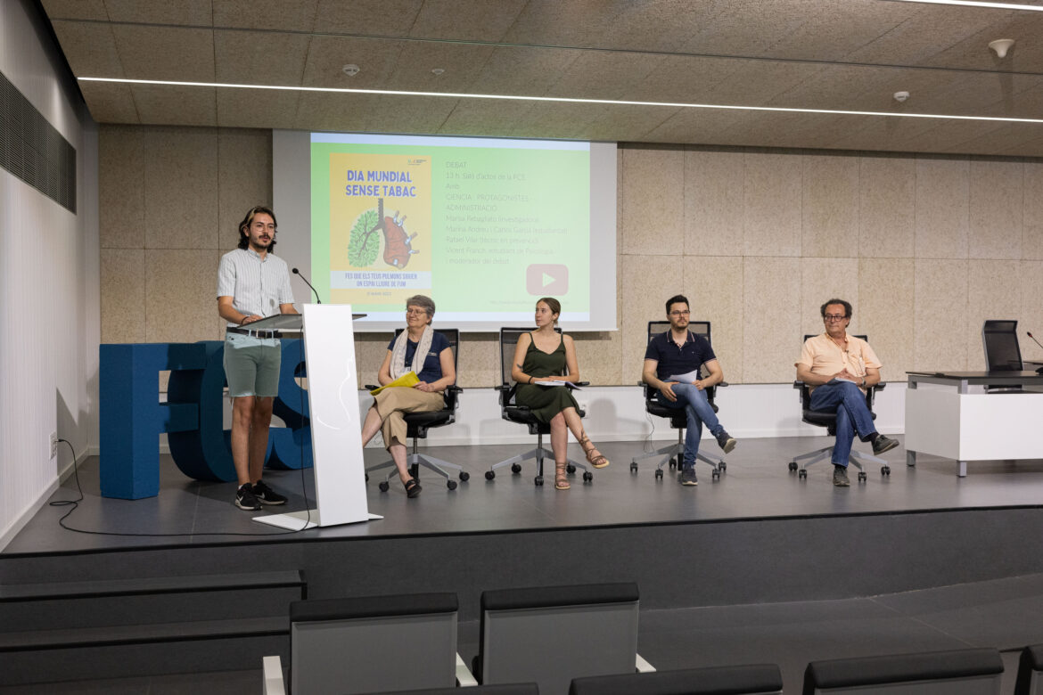 A partir del análisis que aporta la ciencia, el ámbito técnico y la experiencia directa de personas con el consumo de tabaco, se ha debatido sobre las repercusiones que el tabaco tiene en la salud, pero también para el entorno medioambiental. De este modo, el debate ha contado con la participación de Marisa Rebagliato, investigadora del Área de Medicina Preventiva y Salud Pública; Rafael Vilar, técnico de la Oficina de Prevención y Gestión Medioambiental; Marina Andreu, estudiante de Máster y consumidora actual de tabaco; Carlos García, estudiante de la Escuela de Doctorado que ya ha conseguido abandonar el consumo de tabaco, y Vicent Franch, estudiante de Psicología y moderador del debate.