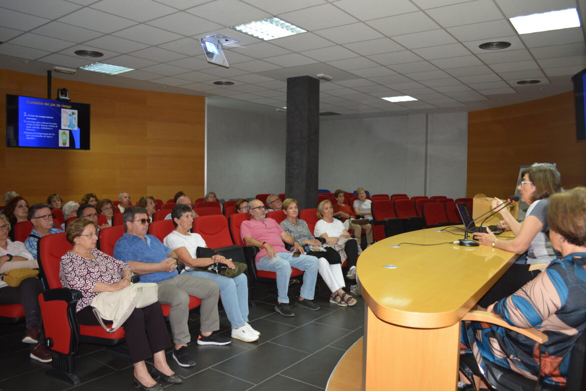 El salón de actos del Colegio de Enfermeros y Enfermeras de Castellón (COECS) ha acogido una charla, organizada por la Asociación de Jubilados San Juan de Dios del COECS centrada en los cuidados y las enfermedades de los pies. Más de una treintena de personas ha asistido a esta conferencia que ha corrido a cargo de la enfermera y podóloga, Teresa González Buils. González ha ofrecido, de manera amena y concisa, información sobre cómo cuidar y proteger los pies, sobre todo en edades avanzadas.
