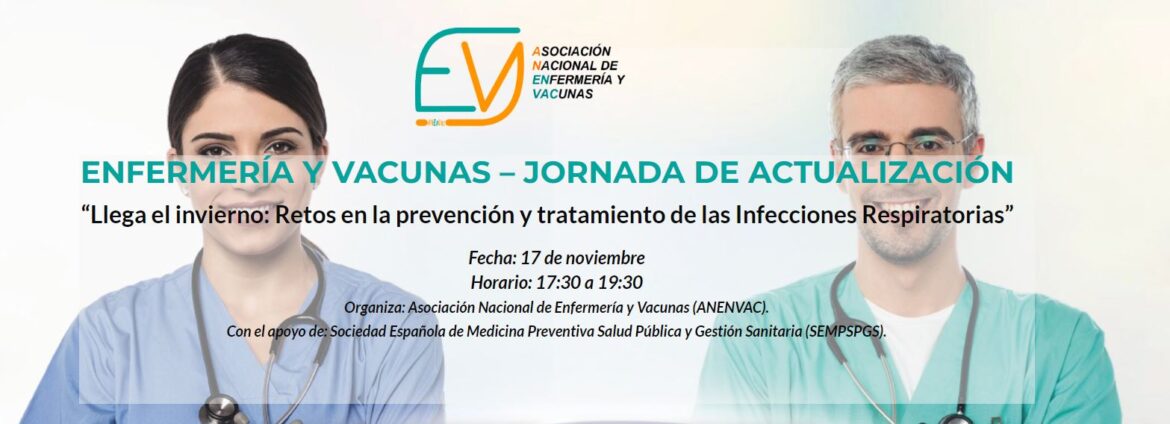 La Asociación Nacional de Enfermería y Vacunas (ANENVAC), con el apoyo de Sociedad Española de Medicina Preventiva Salud Pública y Gestión Sanitaria (SEMPSPGS), ha organizado para el día 17 de noviembre la sesión gratuita online «Llega el invierno: Retos en la prevención y tratamiento de las Infecciones Respiratorias».