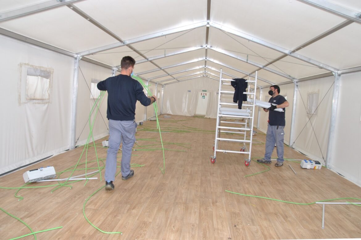 La conselleria de Sanitat Universal i Salut Pública ha iniciado los trabajos de desmontaje del hospital de campaña anexo al Hospital General de Castellón. Las primeras tareas han sido de desmontaje interior del equipamiento eléctrico, para a continuación proseguir con los trabajos estructurales en el exterior de la infraestructura. COECS / GVA.