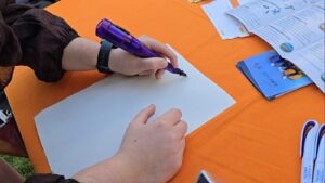 Posteriormente, Almodóvar ha asistido al taller de sensibilización sobre amputaciones y limitaciones motoras, coordinado por COCEMFE. Los participantes han experimentado la frustración de estas barreras a través de dos dinámicas impactantes: tratar de escribir con la mano no dominante utilizando un bolígrafo vibratorio especial que simula la pérdida de control motor, y sumergir la mano en hielo durante un minuto para, a continuación, buscar unas llaves dentro de una caja sin ayuda de la visión, recreando la pérdida de sensibilidad y de motricidad fina.