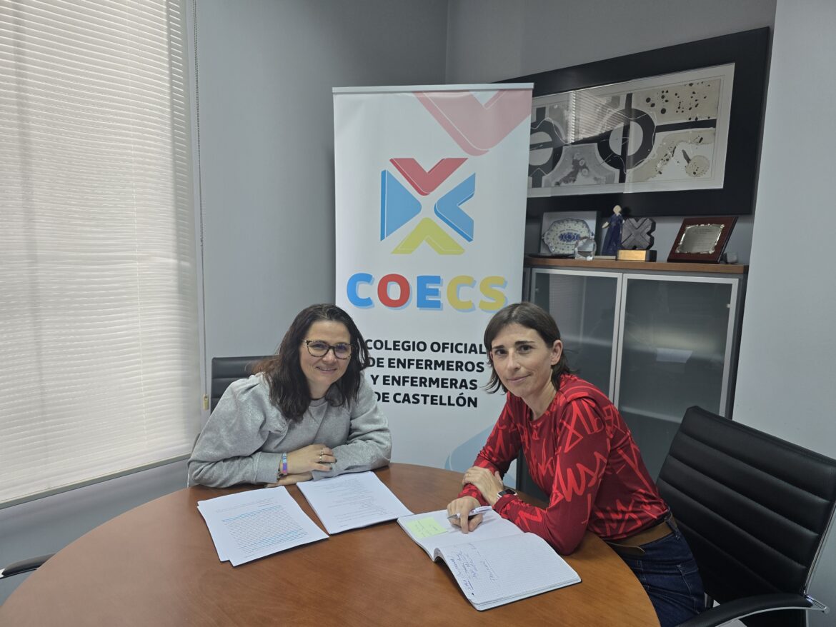 Isabel Almodóvar y Ana Tabernero en la sede del Colegio Oficial de Enfermeros y Enfermeras de Castellón.
