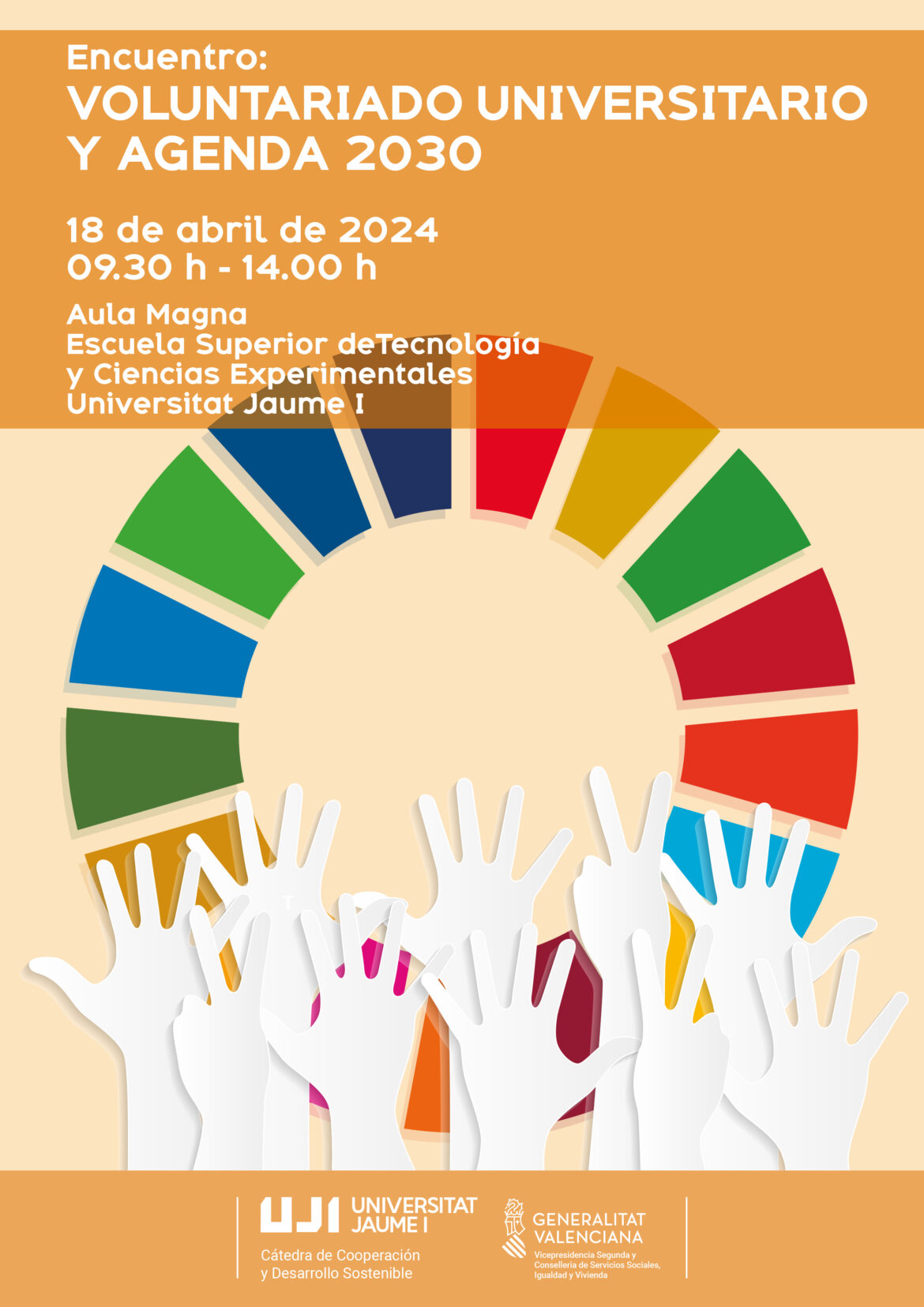 El Aula Magna de la Escuela Superior de Tecnología y Ciencias Experimentales de la Universitat Jaume I acogerá el próximo jueves, 18 de abril a partir de las 9.30 el Encuentro: Voluntariado Universitario y Agenda 2030, que organiza la Cátedra de Cooperación y Desarrollo Sostenible. En este acto, se reflexionará sobre la contribución del voluntariado a la consecución de los objetivos de desarrollo sostenible, y se identificarán y compartirán buenas prácticas para mejorar la relación sinérgica entre el voluntariado, el fortalecimiento de la ciudadanía global y la Agenda 2030.