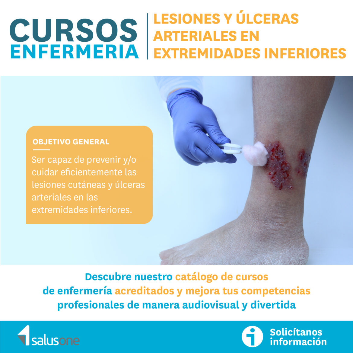 La plataforma SalusOne ha puesto en marcha un nuevo curso CFC sobre lesiones y úlceras arteriales en extremidades inferiores. La formación tiene una duración de 22 horas y está acreditada para profesionales de enfermería (incluye las especialidades de FyC, Pediatría, Ginecología y obstetricia, Geriatría y Enfermería del trabajo), TCAEs, Podología y Medicina.