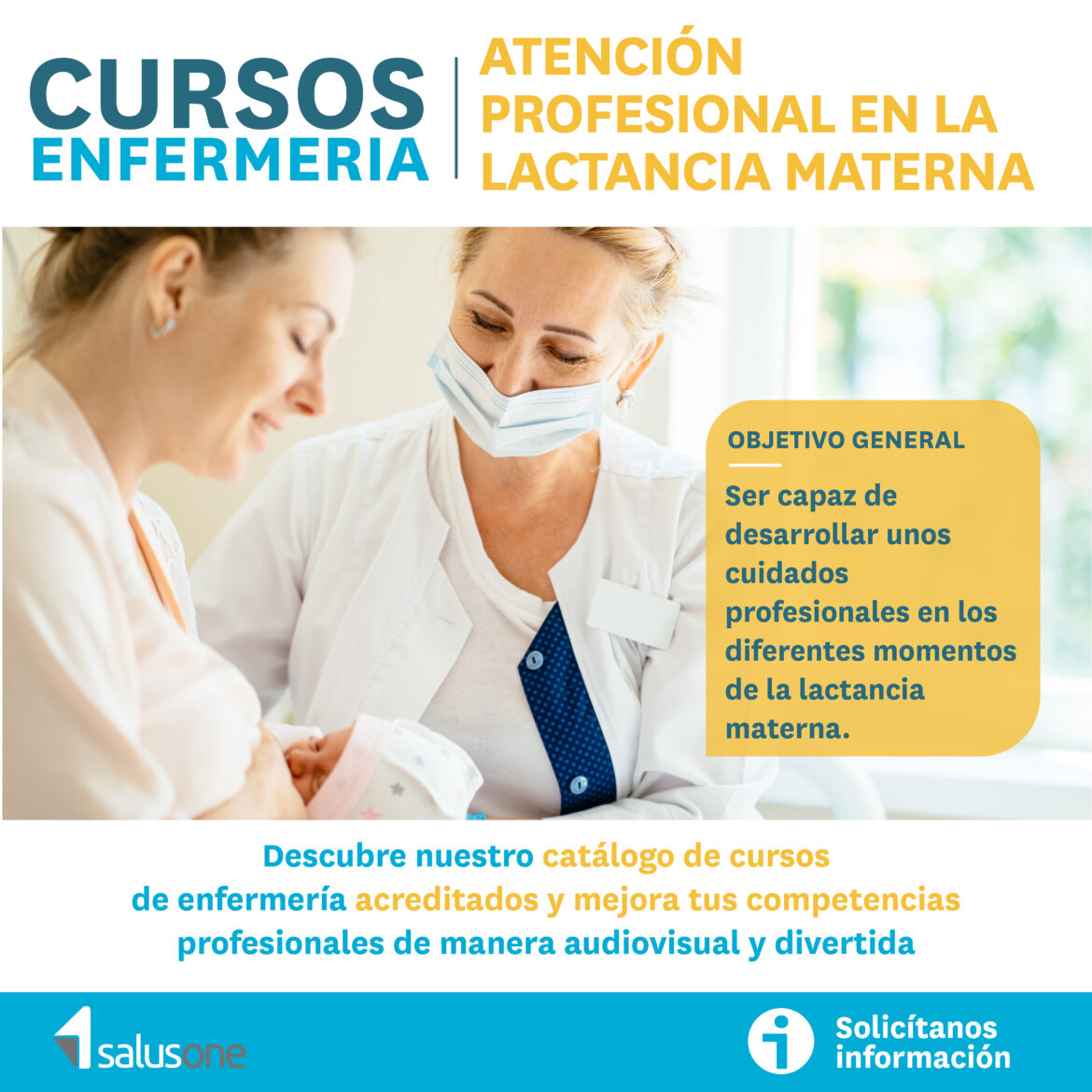 SalusOne, la plataforma formativa para enfermeros y enfermeras de SalusPlay, ha añadido a su catálogo un nuevo curso CFC y también prepara para el próximo martes, 12 de septiembre, un nuevo webinar sobre alimentación saludable. Así, los usuarios de esta aplicación ya se pueden inscribir en el curso de Atención Profesional en Lactancia Materna, que incluye un total de 12 temas.