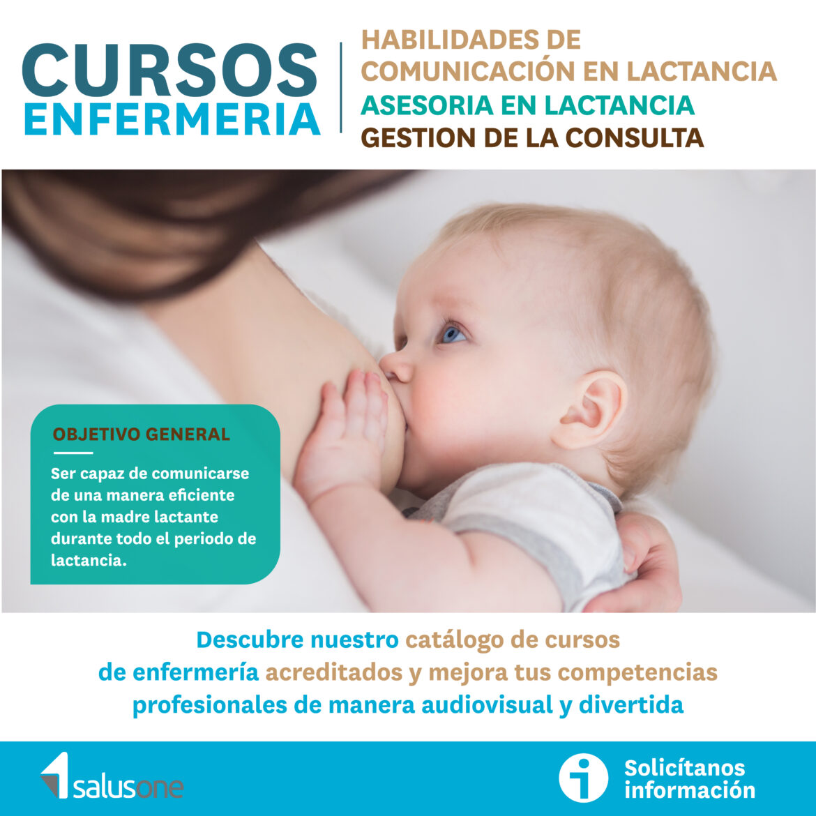 SalusOne, la plataforma de formación para enfermeros y enfermeras de SalusPlay, ha incluido un nuevo curso CFC que se centra en habilidades de comunicación en lactancia, asesoría en lactancia y gestión de la consulta. En total son cinco temas, acompañados por vídeos en calidad HD, sobre habilidades de comunicación en lactancia materna, educación para la salud sobre lactancia materna, recursos de apoyo en lactancia materna, salud mental de la madre y gestión de la consulta de lactancia materna.