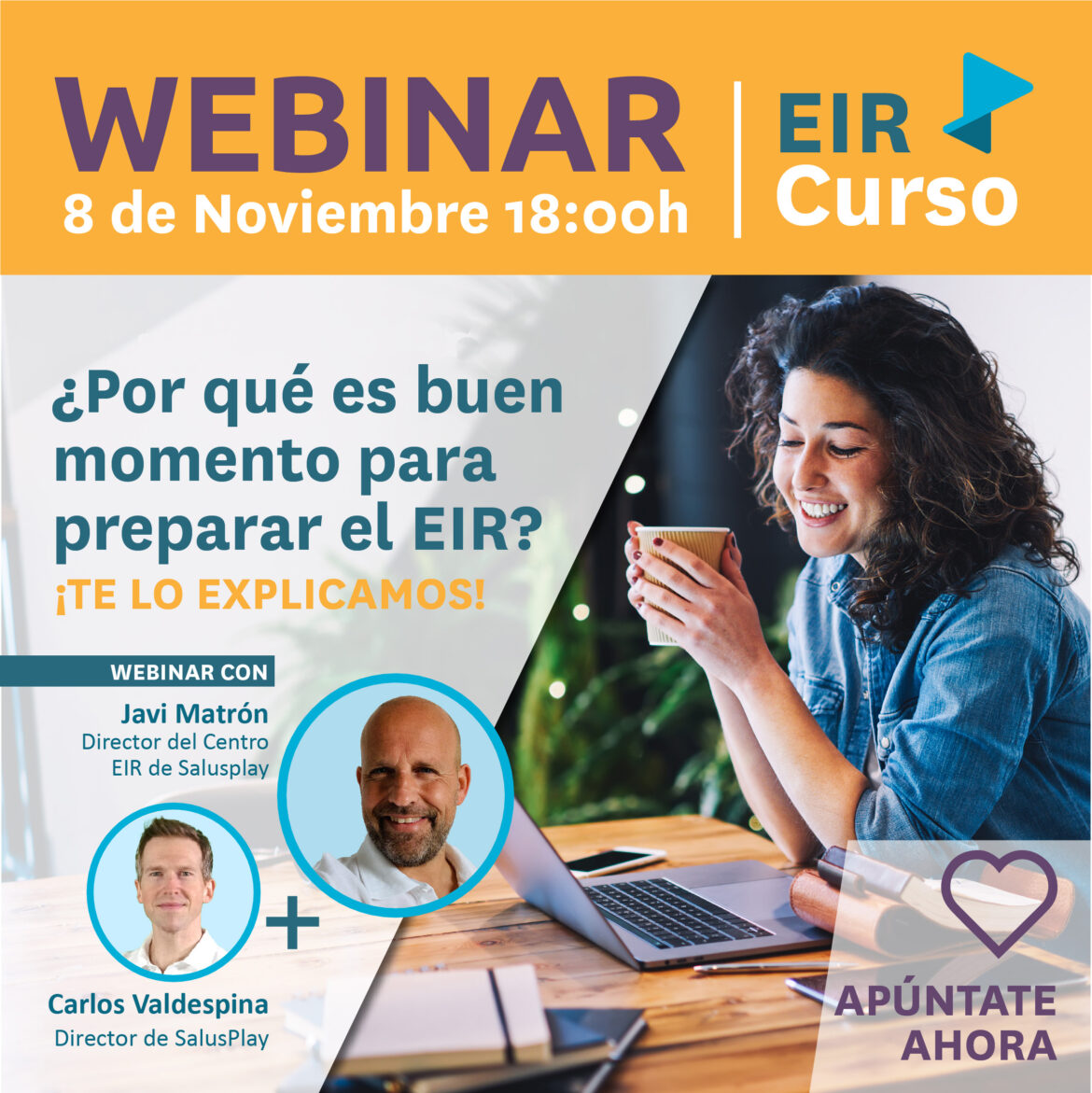 Javier Matrón, director del Centro EIR de SalusPlay, y Carlos Valdespina, director de SalusPlay, se encargarán de desarrollar el contenido del webinar. Además, entre los asistentes se sorteará una plaza para el Curso EIR 2024-2025. Los interesados se puede inscribir en este enlace. SalusPlay